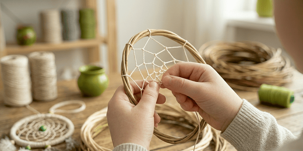 Создание ловцов снов из природных материалов.