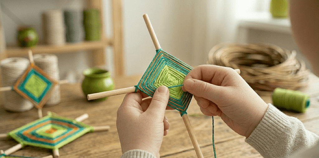 Мандала, сплетенная из ниток на деревянных палочках — это древний узор, который концентрирует энергию, успокаивает ум и наполняет пространство гармонией.